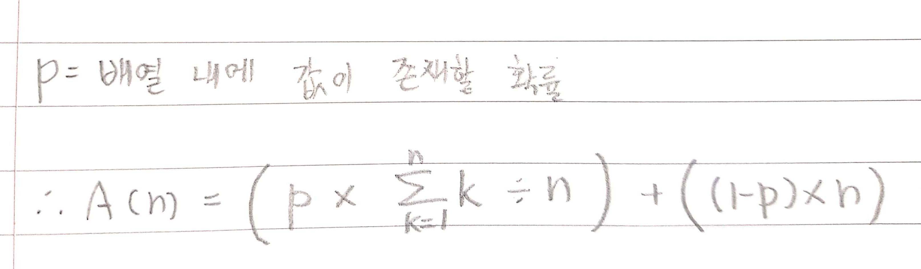 바로 이전에 순차 탐색 알고리즘에 대해서 깊게 탐구해보았다. 그러나 평균 시간 복잡도를 좀 더 제대로 확인할 수 있는 방법을 생각해보았다. 내가 구한 공식과 실제 값을 비교해볼 수 있는 프로그램을 구현하는 것이다.