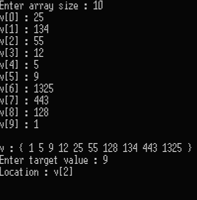 cout << "Location : v[" << BinSearch(num) << "]\n\n";